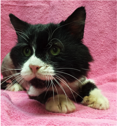 At the beginning of April, one of our very caring clients had brought in a stray cat that needed medical attention. There are many strays in his area, and he was very familiar with this one, Sylvester. He has always been very friendly: approaching him for meals and interacting with people. He had noticed a large wound on the back of his head and was able to bring him in for treatment.